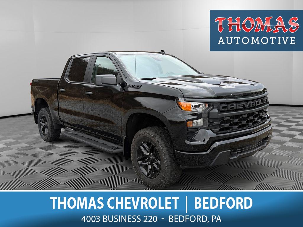 2026 Chevrolet Silverado 1500 Custom Trail Boss 4WD V8 5.3L Gasoline. Located in Bedford, PA, this rugged Chevrolet Silverado delivers capability, comfort, and technology at the best price in the area. Powered by a confident 5.3L V8 gasoline engine and equipped with four-wheel drive, the Trail Boss is ready for towing, hauling, and off-road excursions while maintaining refined everyday drivability. Inside, the cabin blends durable materials with modern convenience. Stay connected with Android Auto and Hands Free Bluetooth for seamless smartphone integration and clear, safe communication on the road. Remote Start adds winter and convenience appeal by letting you warm up or cool down the cabin before you enter. Safety and driver assistance features include Lane Keep Assist and Lane Departure Warning to help maintain steady, attentive driving on highways and long trips. The Trail Boss suspension and factory off-road enhancements provide improved ground clearance and confidence on rough terrain without sacrificing ride quality. This 2026 Chevrolet Silverado 1500 Custom Trail Boss is ideal for buyers seeking strong towing capacity, V8 performance, and contemporary tech in a work-ready package. Located in Bedford, PA, it's priced competitively to move quickly offering the best price for this combination of features and capabilities. Contact us to schedule a test drive and experience the Trail Boss for yourself.
