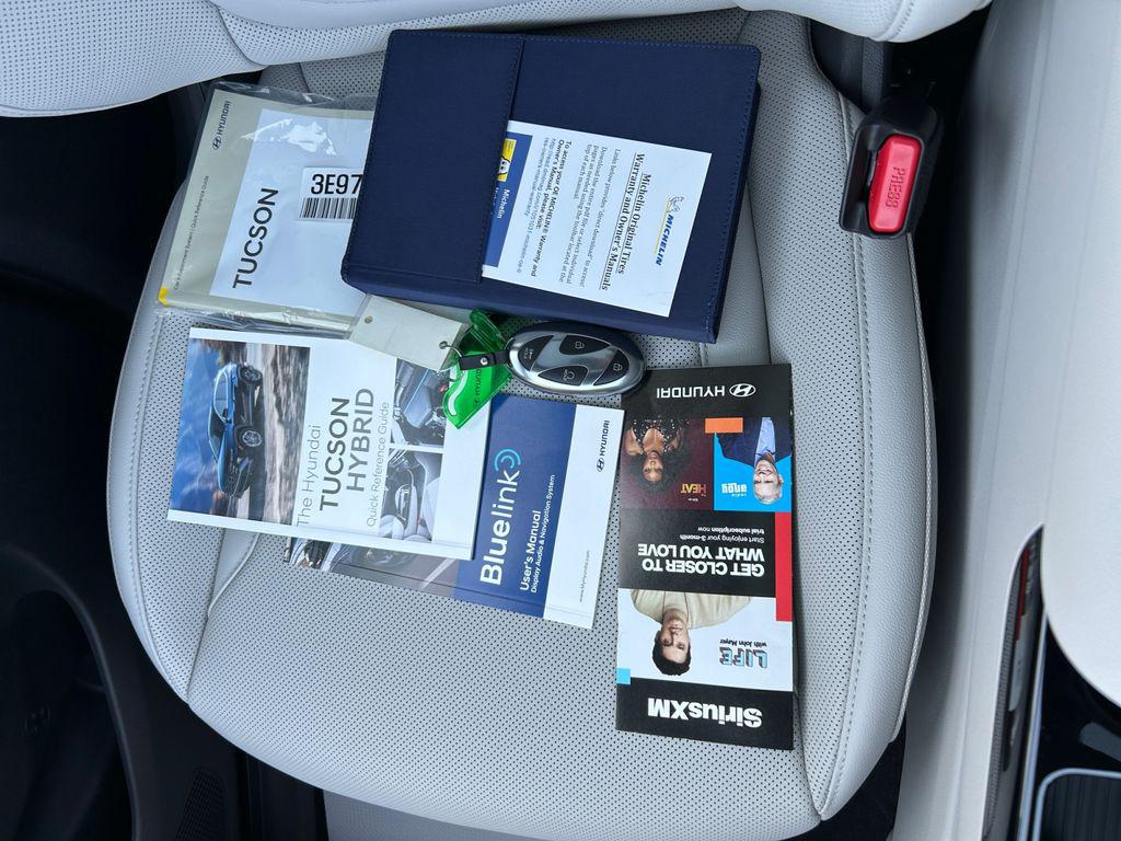 The leather seats in this model are a must for buyers looking for comfort, durability, and style. The Hyundai Tucson Hybrid offers Apple CarPlay for seamless connectivity. The installed navigation system will keep you on the right path. Bluetooth technology is built into this Hyundai Tucson Hybrid, keeping your hands on the steering wheel and your focus on the road. Protect this mid-size suv from unwanted accidents with a cutting edge backup camera system. It features a high end BOSE stereo system. Keep your hands warm all winter with a heated steering wheel in this model . This Hyundai Tucson Hybrid offers Android Auto for seamless smartphone integration. This model keeps you comfortable with Auto Climate. This Hyundai Tucson Hybrid has a 4 Cyl, 1.6L high output engine. Quickly unlock this mid-size suv with keyless entry. Enjoy the convenience of the power liftgate on this mid-size suv. Conquer any rainy, snowy, or icy road conditions this winter with the all wheel drive system on this unit.