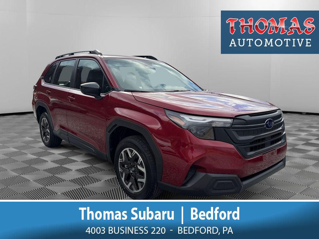 2026 Subaru Forester Base Plus AWD â" Bedford, PA â" Best Price Get behind the wheel of a confident and capable 2026 Subaru Forester Base Plus, now available in Bedford, PA. This AWD compact SUV is powered by a smooth and efficient 4â'cylinder, 2.5L gasoline engine that balances spirited performance with everyday fuel economy, making it a smart choice for commuters, families, and weekend adventurers. Step inside and enjoy modern connectivity and safety features designed for convenience and peace of mind. The Subaru Forester includes Apple CarPlay and handsâ'free Bluetooth for seamless smartphone integration and safer calls on the go. XM Radio delivers endless entertainment options, while the backâ'up camera and Lane Keep Assist enhance driver awareness and help keep you confidently centered on busy roads and tight parking situations. The Base Plus trim pairs practical comfort with an intuitive layout that maximizes visibility and cargo versatility â" ideal for grocery runs, road trips, and outdoor gear. Subaru's renowned AWD system provides added traction and stability in all seasons, giving you confidence on wet, snowy, or uneven roads. This Subaru Forester is competitively priced and represents the best price in the area for a 2026 model with these features. Located in Bedford, PA, this vehicle is ready for test drives and immediate delivery. Contact us to schedule a viewing and take advantage of this exceptional value on a versatile, safetyâ'focused SUV.