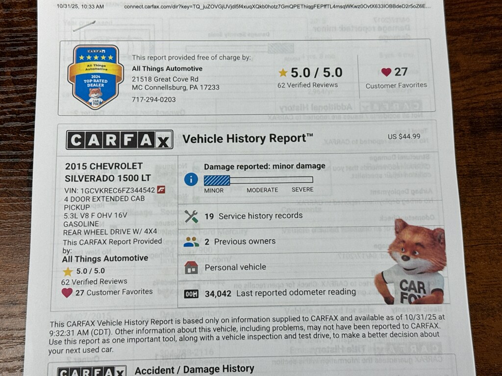 If you're searching for the best-priced Chevy Silverado in McConnellsburg, PA, this well-maintained LT model is ready for your test drive. Visit us today to explore this 2015 Chevrolet Silverado 1500 LT 4WD and experience unbeatable value on a clean, low-mileage truck.