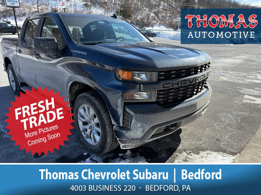 Discover an exceptional deal on a 2021 Chevrolet Silverado 1500 Custom 4WD, now available in Bedford, PA. This well-maintained pickup features a fuel-efficient 4-cylinder 2.7L gasoline engine that delivers strong performance and excellent towing capability for its class. With CARFAX 1-Owner history, you can buy with confidence knowing this Chevrolet Silverado has been responsibly cared for. Equipped with modern connectivity, the Chevrolet Silverado includes Android Auto and Apple CarPlay for seamless smartphone integration, plus a Back-Up Camera to make parking and hitching safer and easier. Remote Start adds convenience on cold mornings or hot afternoons, so your cabin reaches the perfect temperature before you get in. This 2021 Chevrolet Silverado Custom combines a rugged exterior with a comfortable interior and practical features that meet daily driving and work demands. Four-wheel drive enhances traction in rain, snow, and off-road conditions, making it a versatile choice for Pennsylvania weather and beyond. Located in Bedford, PA, this Chevrolet Silverado is priced aggressively and represents the best price in the area for comparable models. Don't miss your chance to own a dependable, feature-rich 2021 Chevrolet Silverado 1500 Custom 4WD with a clean CARFAX 1-Owner report. Contact us today to schedule a test drive.