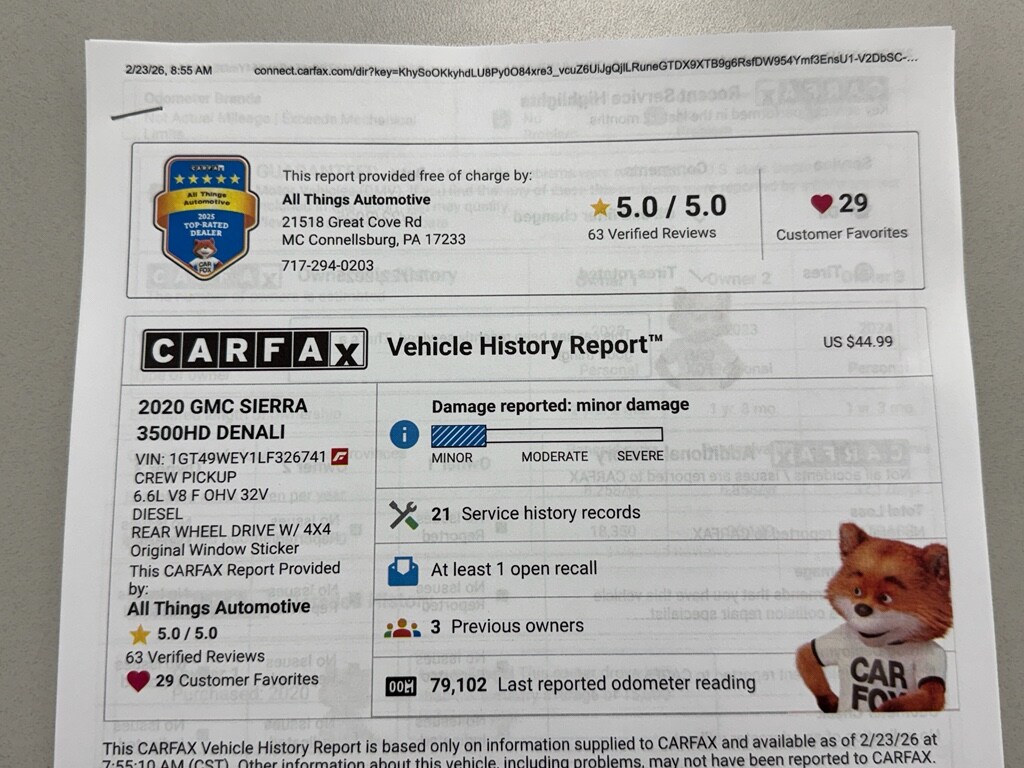 Looking for a heavy-duty pickup that blends luxury, capability, and economy? This 2020 GMC Sierra 3500 Denali with 4WD and the stout 6.6L V8 diesel delivers outstanding towing power, exceptional highway fuel efficiency for its class, and premium Denali comfort. Located in McConnellsburg, PA, this GMC Sierra 3500 Denali offers the best price on a top-tier, fully equipped diesel workhorse.