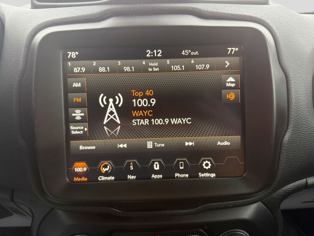 This vehicle has a clean CARFAX vehicle history report. This vehicle is a certified CARFAX 1-owner. Apple CarPlay: Seamless smartphone integration for this small suv - stay connected and entertained on the go! See what's behind you with the back up camera on the Jeep Renegade. This model offers Automatic Climate Control for personalized comfort. This Jeep Renegade's Lane Departure Warning helps keep you in your lane. This model comes equipped with Android Auto for seamless smartphone integration on the road. Start this Jeep Renegade from inside with remote start. with XM/Sirus Satellite Radio you are no longer restricted by poor quality local radio stations while driving this small suv. Anywhere on the planet, you will have hundreds of digital stations to choose from. You'll never again be lost in a crowded city or a country region with the navigation system on the vehicle. Bluetooth technology is built into this small suv, keeping your hands on the steering wheel and your focus on the road.