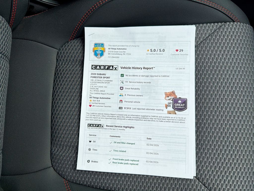 2020 Subaru Forester Sport AWD â" 4-Cylinder 2.5L, located in Bedford, PA. This well-maintained Subaru Forester Sport delivers the versatility and efficiency Subaru drivers depend on, with a responsive 4-cylinder 2.5L gasoline engine and Symmetrical All-Wheel Drive for confident handling in any season. The Sport trim adds rugged styling cues and comfort-focused features that enhance every drive. Inside, enjoy modern connectivity with Apple CarPlay and Android Auto for seamless smartphone integration, plus Hands-Free Bluetooth for safe calls and media control on the go. Premium entertainment comes via XM Radio, while the included CARFAX Clean Report confirms a transparent history you can trust. Practical cargo space, comfortable seating, and intuitive controls make this Subaru Forester an ideal choice for commuting, family trips, or weekend adventures around Bedford and beyond. This 2020 Subaru Forester Sport pairs dependable Subaru engineering with smart features and a clean vehicle history, and it's competitively priced to be the best value in the area. Whether navigating local roads or exploring nearby trails, you'll appreciate the blend of capability, economy, and technology. Stop by Bedford, PA to see it and take a test drive â" you'll find this Subaru Forester Sport offers an exceptional combination of features, safety, and the best price available.