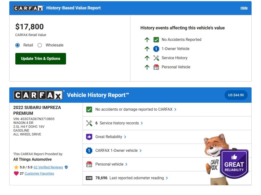 This CARFAX 1-Owner vehicle has been carefully maintained and shows a clean history, reflecting responsible ownership and reliable performance. The Premium trim adds upgraded comfort and convenience touches, making daily commutes and weekend getaways more enjoyable. With roomy seating, a practical interior layout, and Subaru's reputation for durability, this Subaru Impreza is a smart choice for families, commuters, and outdoor enthusiasts alike.